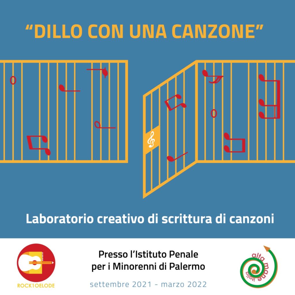 DILLO CON UNA CANZONE, è un Progetto, finanziato con il contributo della Fondazione “Alta Mane” Italia, che prevede la realizzazione di un Laboratorio di scrittura di canzoni presso l’Istituto Penitenziario per i Minorenni di Palermo (Malaspina). L’obiettivo è quello di promuovere, attraverso la Musica, la creatività e la scrittura, il loro benessere, la capacità di condivisione e l’educazione alla Bellezza.